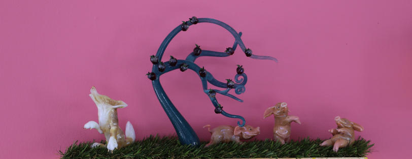 Pour le dernier jour de l'exposition "Promenons-nous dans les bois..." des artistes verriers Karina Guévin et Cédric Ginart, Cécile Thevenot, comédienne et Nize Putton, conteuse, s'associent pour semer des surprises contées et chuchotées au coeur des oeuvres tout au long de l'après-midi.